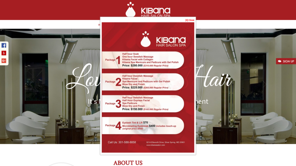 Kibana, located in the heart of Downtown Silver Spring, is one of the Maryland area’s newest luxury salon and spas. Recently featured on a TLC makeover show, Kibana shows dedication to their clients in delivering classic and fashion forward cuts & coloring, as well as a complete spa service menu. With a staff of highly experienced hairstylists, skin and massage therapists and nail technicians, Kibana’s goal is to make people feel as beautiful on the outside as they are on the inside.