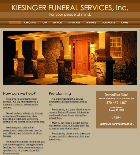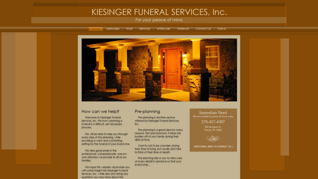 Welcome to Kiesinger Funeral Services, Inc. We know planning a funeral is a difficult, yet necessary process.