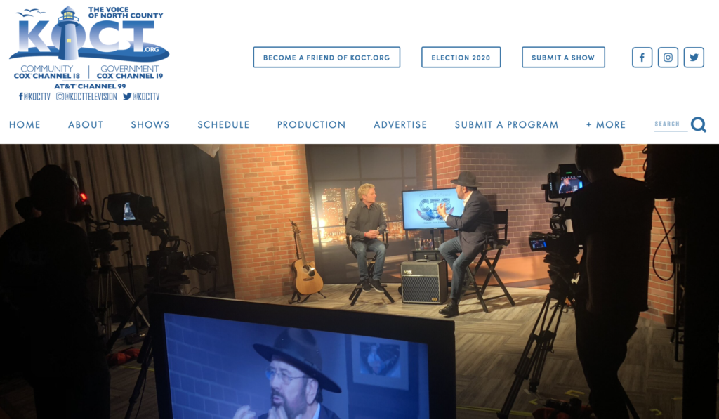 KOCT.ORG is a nonprofit, live stream PEG outlet partially funded by the City of Oceanside & powered by Cox Cable. KOCT TV Studio offers a production ready SoundStage in North County, San Diego, complete with Green Screen & perfect for video, photo shoots or sound recording.