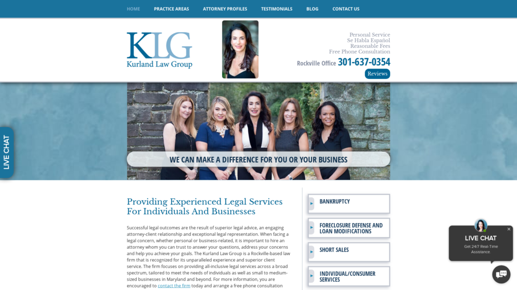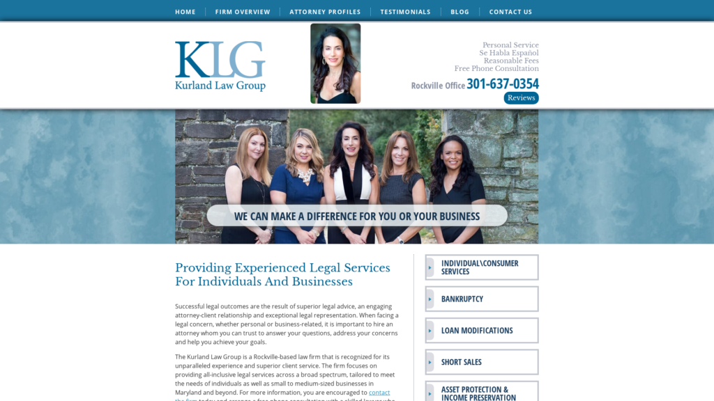 Rockville attorneys with more than 20 years of experience. Kurland Law Group helps clients in Maryland with bankruptcy and other legal issues: 301-637-0354.