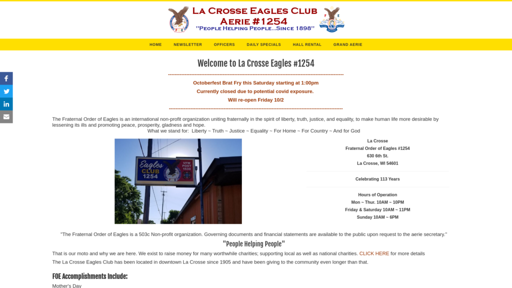 Home » Listings » LA CROSSE AERIE 1254 FRATERNAL ORDER OF EAGLES