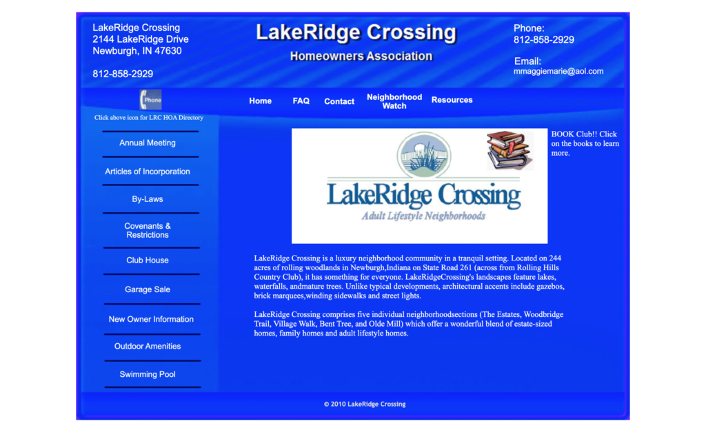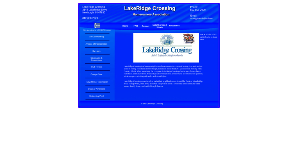 LakeRidge Crossing is a luxury neighborhood community in a tranquil setting. Located on 244 acres of rolling woodlands in Newburgh, Indiana on State Road 261 (across from Rolling Hills Country Club), it has something for everyone. LakeRidgeCrossing’s landscapes feature lakes, waterfalls, and mature trees. Unlike typical developments, architectural accents include gazebos, brick marquees, winding sidewalks, and street lights.