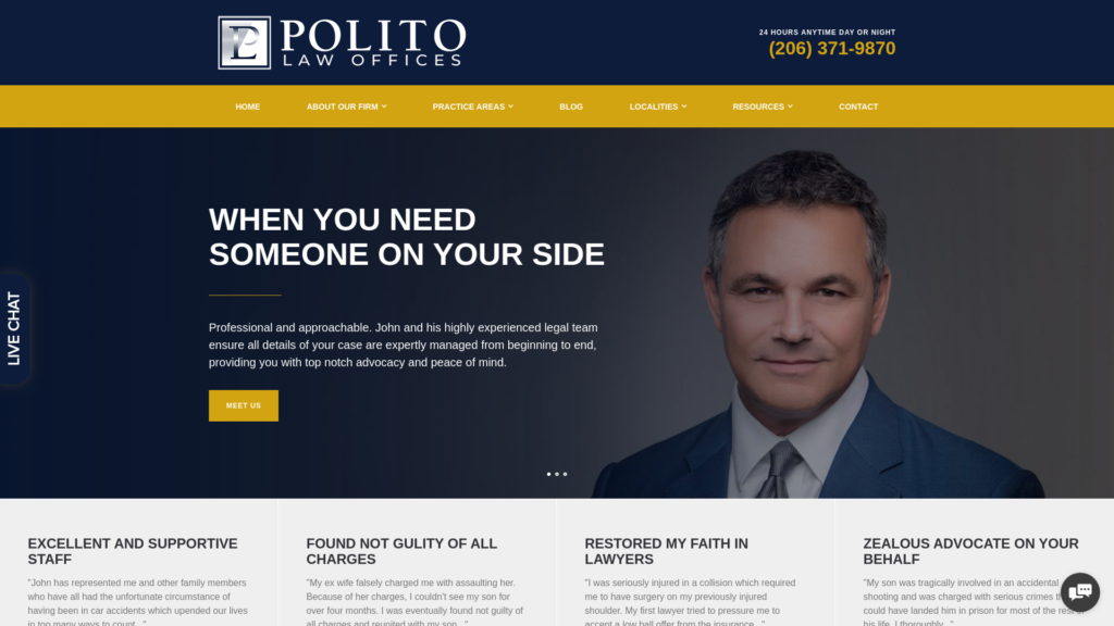 Polito Law Offices is a thirty year established criminal defense and personal injury law firm, providing exceptional legal counsel and support to local residents throughout the Pacific Northwest.