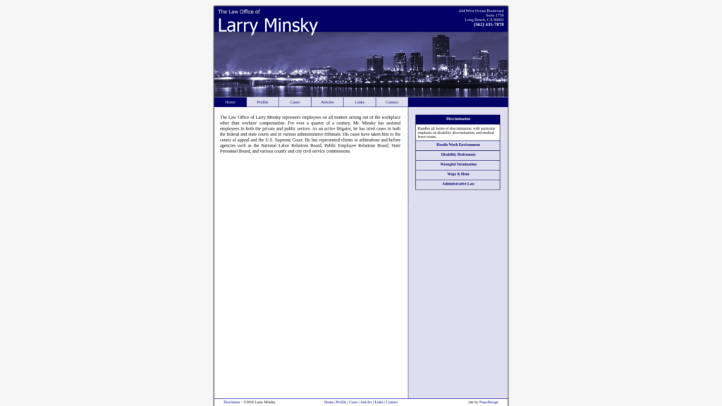 The Law Office of Larry Minsky represents employees on all matters arising out of the workplace other than workers' compensation. Based in Long Beach, California, the office has been successfully representing clients for more than 25 years.