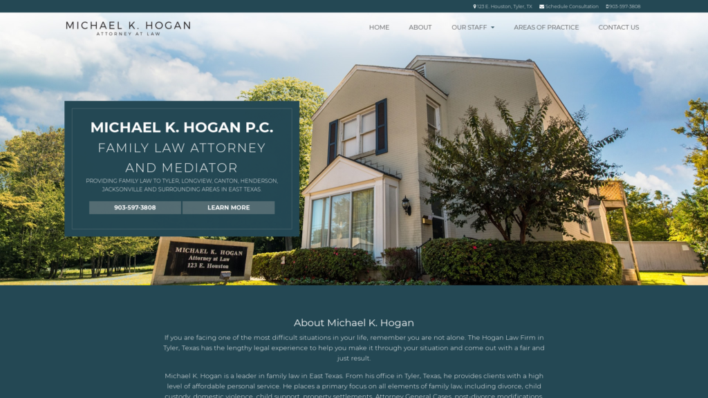 Michael K. Hogan is a leader in family law in East Texas. From his office in Tyler, Texas, he offers Family Lawyer, Divorce Lawyer, Child Custody Lawyer, Child Support Lawyer services and more. He will help you make it through your situation and come out