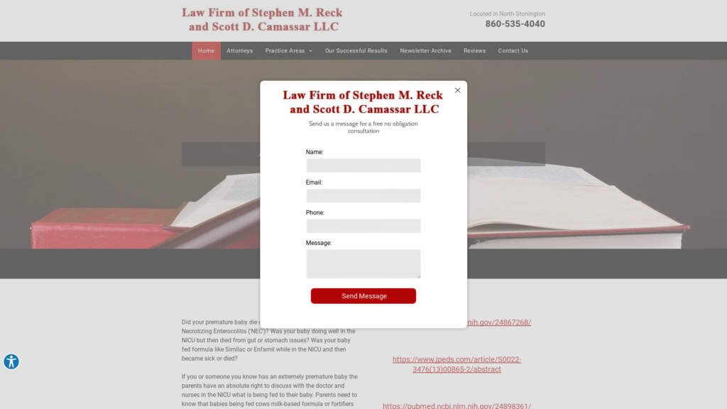 Law Firm of Stephen M. Reck and Scott D. Camassar LLC handles all types of personal injury & death cases in North Stonington, New London & Norwich, CT. Call 860-535-4040.