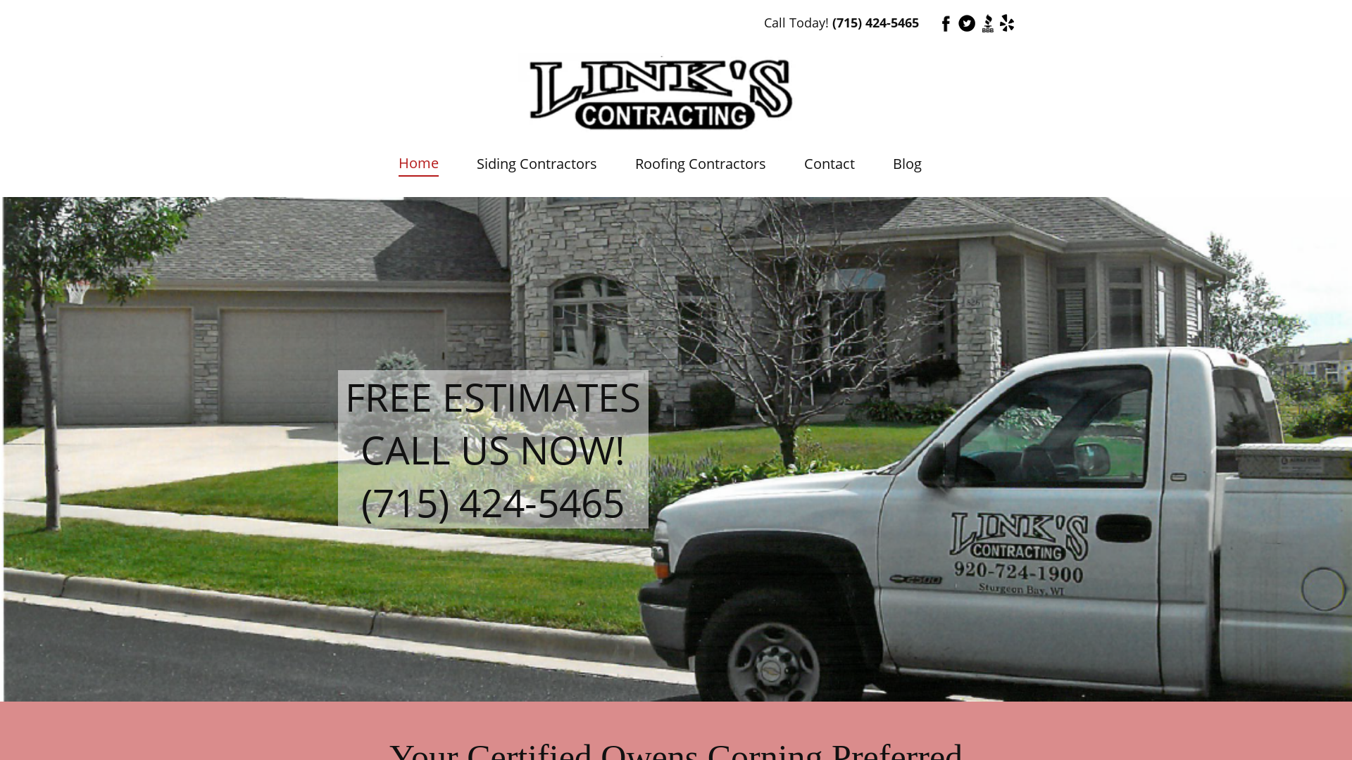 Welcome to Link's Contracting Inc. We're a roofing contractor that can also handle all exterior work. Call (715) 424-5465.