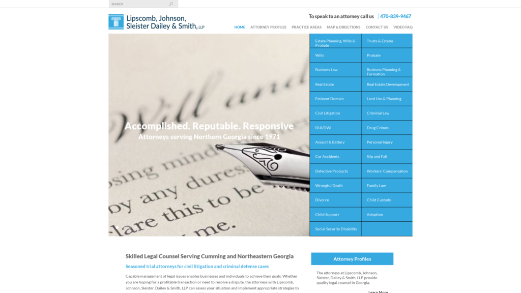 Whether you are seeking reliable legal advice or determined advocacy, Lipscomb, Johnson, Sleister, Dailey & Smith, LLP is the law firm in Cumming you can trust.