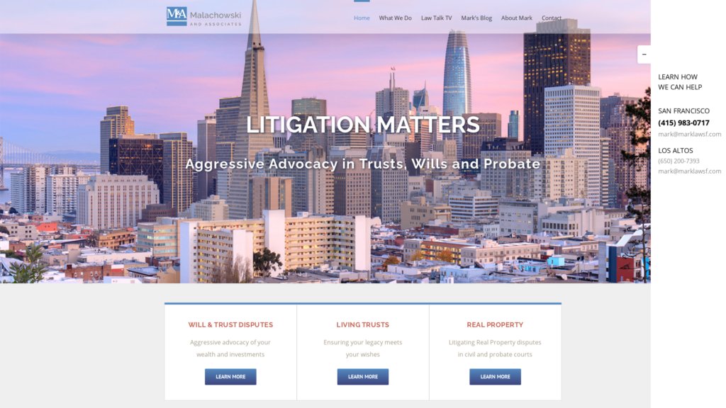Mark Malachowski has over twelve years of litigation experience in Northern California Superior and Federal Courts. His practice focuses on Trust Disputes, Will Contests, and Trust Administration.
