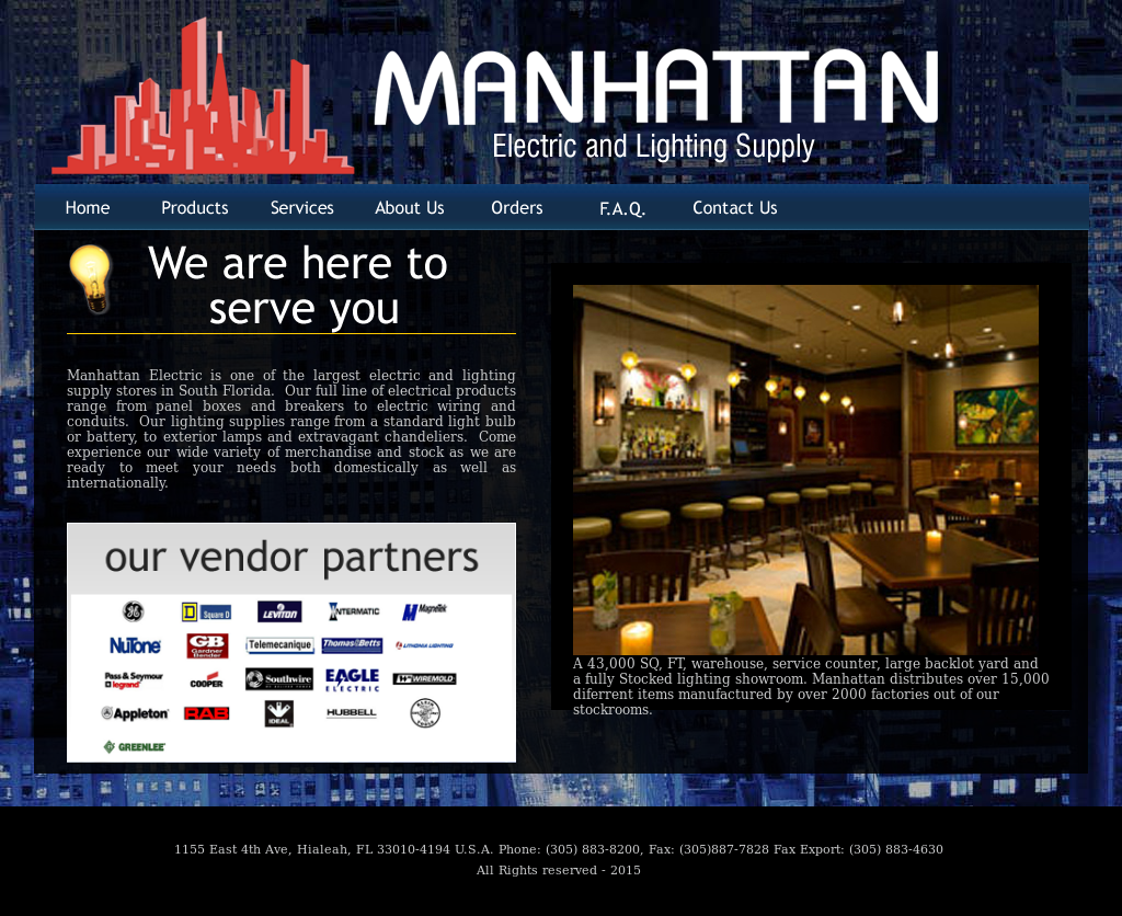 Manhattan Electric & Lighting Supply began as a South Florida electrical supplier in 1968.  In 1981, we expanded to a larger location, adding more office space as well as a lighting showroom in 1984.  Over the years, our continued success spurred further growth allowing us to add an export department in 1997.