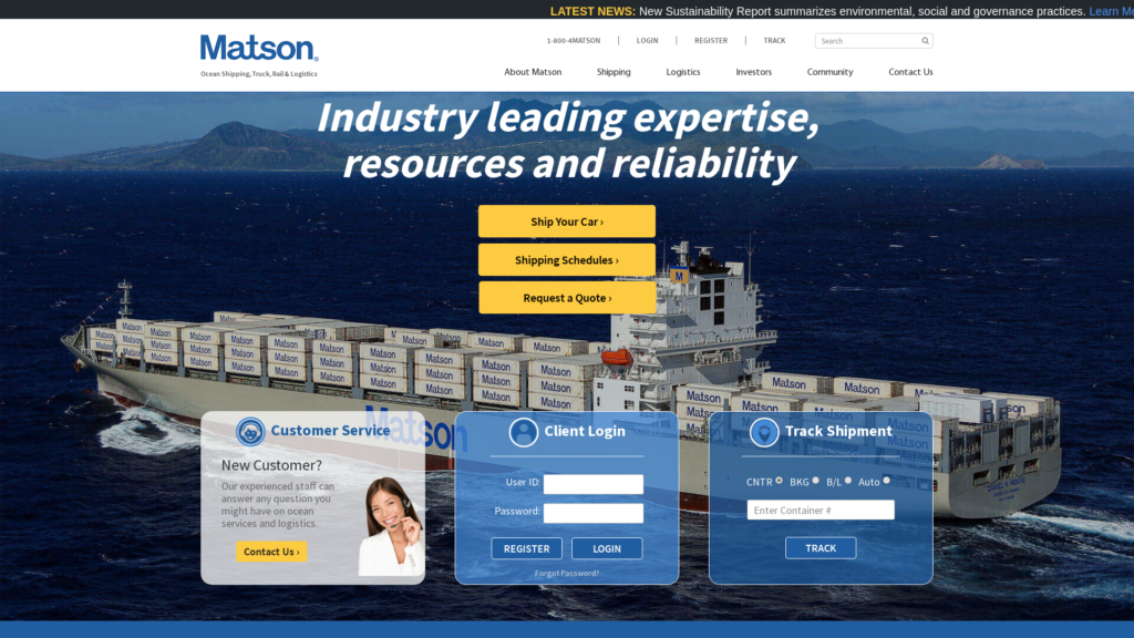 Matson offers ocean transportation to Hawaii, Alaska, Guam, Micronesia, the South Pacific, Japan and China, and international logistics expertise.