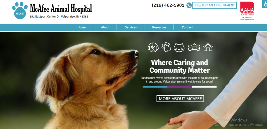 McAfee Animal Hospital has been a part of the Valparaiso community since 1943. This animal hospital was founded on the value of being a part of the community and we are committed to providing the most compassionate, ethical, and quality care to our patients. We look forward to serving the pets and people of Northwest Indiana for many more years to come!