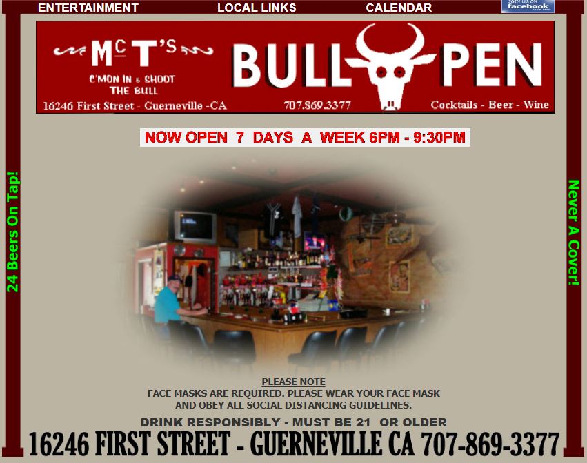 McT's Bullpen Sports Bar - Downtown Guerneville CA 707-869-3377