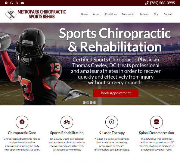 Metropark Chiropractic Sports Rehab: Conveniently located in Iselin, NJ, Thomas Cawley, DC and his team have been providing patients of Middlesex County with top-rated chiropractic and sports rehabilitation care for many years. Whether you suffer pain from an auto or work-related accident or sports injury, the health care facility at Metropark Chiropractic Sports Rehab has the state-of-the-art equipment to get you back to yourself in the quickest time possible.