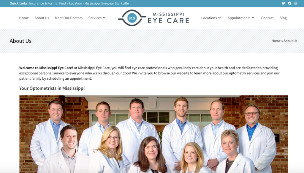 Mississippi Eye Care is a full service eye and vision care provider, accepting both eye emergencies as well as scheduled appointments. Our regional presence and eight office locations make Mississippi Eye Care offices the eye and vision care providers of choice. Our experienced team of doctors offer comprehensive vision exams and specialize in the diagnosis and treatment of a wide array of eye diseases, conditions, and problems. Patients come to Mississippi Eye Care because they know they will receive the personal attention and professional care that is our foundation. Our team is dedicated to keeping our patients comfortable and well-informed at all times