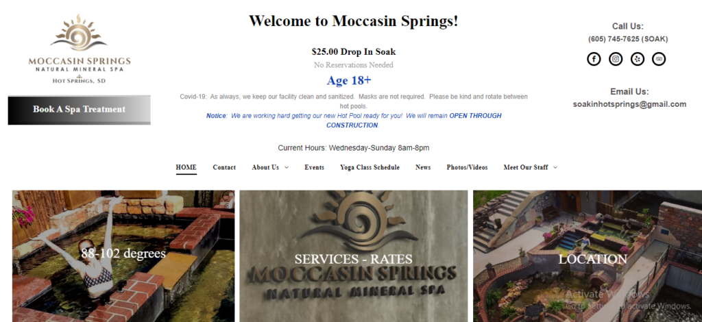 The natural mineral springs, have been bubbling up out of the ground for over 140 years filtered through a natural red rock formation, flowing into a moccasin shaped pool – same as it did in 1881 and before. The “Original Indian Springs that made this town famous” has been called The Black Hills Spa, Minnekahta Springs and now Moccasin Springs. Unlike many natural springs, the water here has a pleasant scent and a silky texture and high in magnesium and calcium.