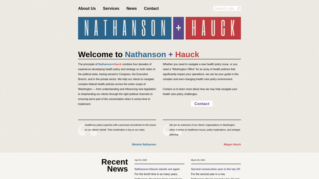 The principals of Nathanson+Hauck combine four decades of experience developing health policy and strategy on both sides of the political aisle, having served in Congress, the Executive Branch, and in the private sector. We help our clients to navigate complex federal health policies across the entire scope of Washington — from understanding and influencing new legislation to shepherd our clients through the right political channels to ensuring we’re part of the conversation when it comes time to implement.