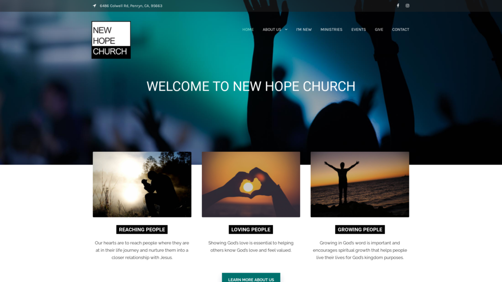 Welcome to New Hope Church, where you will feel Valued and Loved. Our mission is to Reach People and Love People and to see them Grow into their full potential for God’s kingdom purpose in their life.