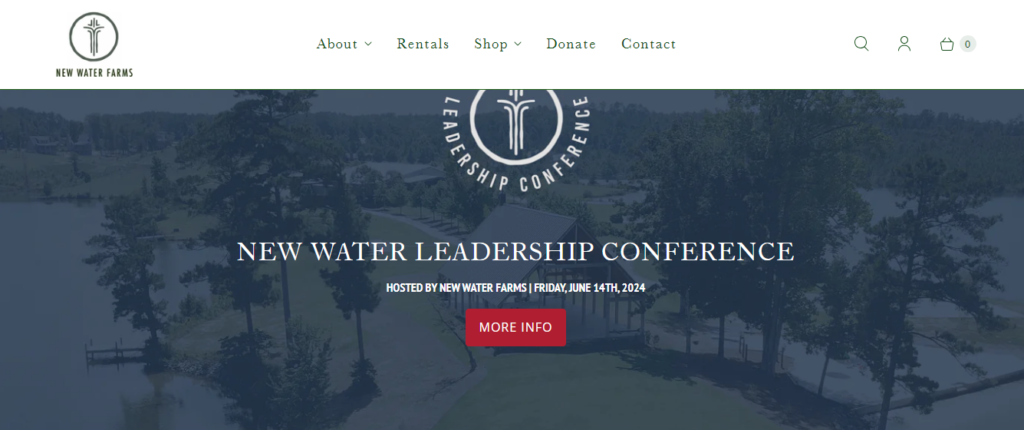 New Water is a 22 acre working farm and event facility located in Sandy Creek on beautiful Lake Martin. It creates both experiences and activities to cultivate spiritual growth and renewal utilizing three practices in fulfilling its mission: teaching, training, and transforming.