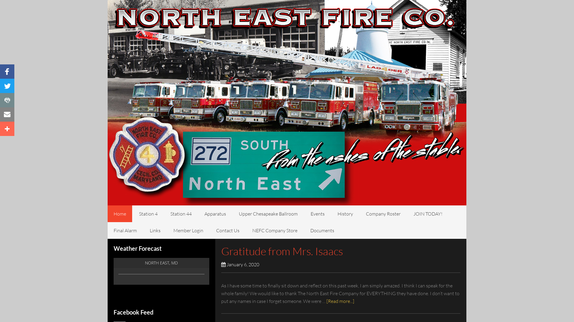 It has been brought to our attention that apparently we need to address our privacy issues for this page. AT NO TIME, will any personally identifying information for ANY patient, victim or first responder, regardless of age, be released on this page unless stated otherwise. Also, due to the nature of some emergencies, not all information will be released at the time of the call. This goes back to allowing investigations to be done and so on, so forth. Also, links posted on this page without prior permission from the site admins will be deleted. If any fan of this page posts any personally identifying information in regards to a call, victim or patient, they will be banned from this page. This is a page where we can assist in bringing you information related to calls, weather, and other important information in North East and Cecil County. Please help us keep this site running by respecting these issues! Thank you, and thank you for your support of the North East Fire Company!
