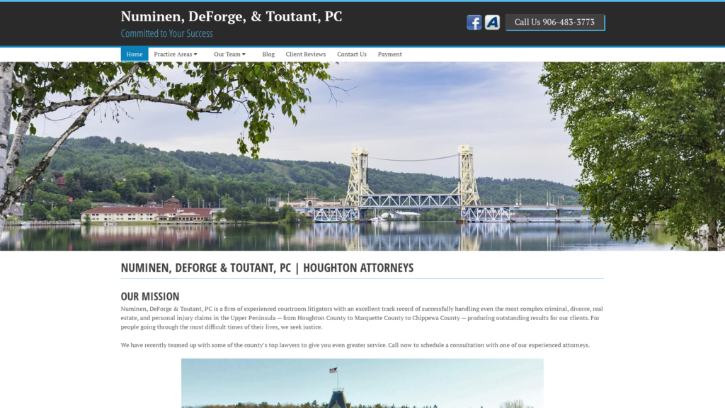 Numinen, DeForge & Toutant, PC is a firm of experienced courtroom litigators with an excellent track record of successfully handling even the most complex criminal, divorce, real estate, and personal injury claims in the Upper Peninsula — from Houghton County to Marquette County to Chippewa County — producing outstanding results for our clients.