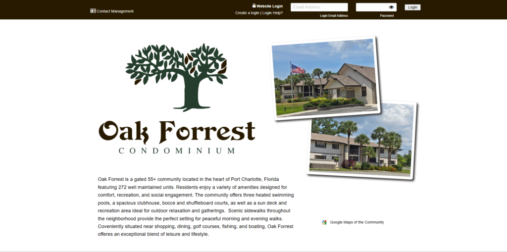 Oak Forrest is a gated 55+ community located in the heart of Port Charlotte, Florida featuring 272 well maintained units. Residents enjoy a variety of amenities designed for comfort, recreation, and social engagement. The community offers three heated swimming pools, a spacious clubhouse, bocce and shuffleboard courts, as well as a sun deck and recreation area ideal for outdoor relaxation and gatherings. Scenic sidewalks throughout the neighborhood provide the perfect setting for peaceful morning and evening walks. Coveniently situated near shopping, dining, golf courses, fishing, and boating, Oak Forrest offeres an exceptional blend of leisure and lifestyle.