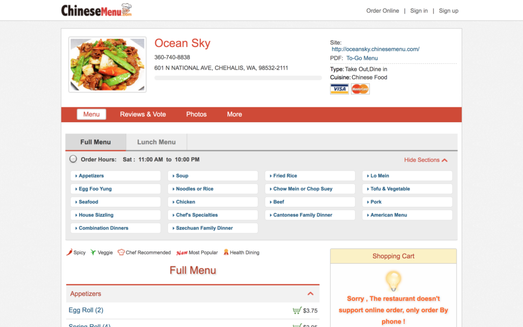 Ocean Sky - Delivery and Pick up in CHEHALIS - ChineseMenu.com