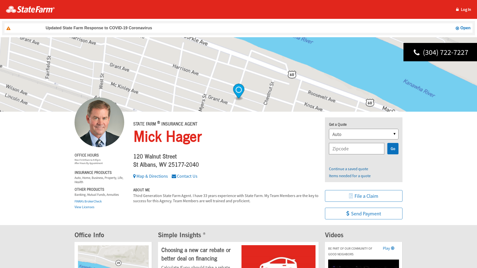 Call (304) 722-7227 for life, home, car insurance and more. Get a free quote from State Farm Agent Mick Hager in St Albans, WV