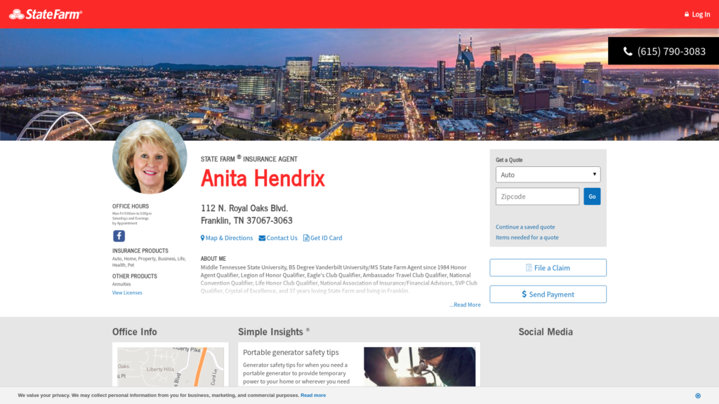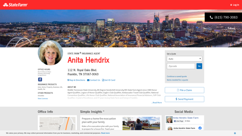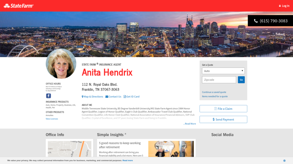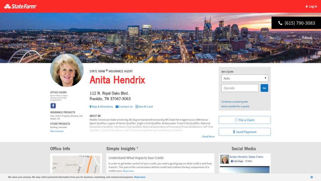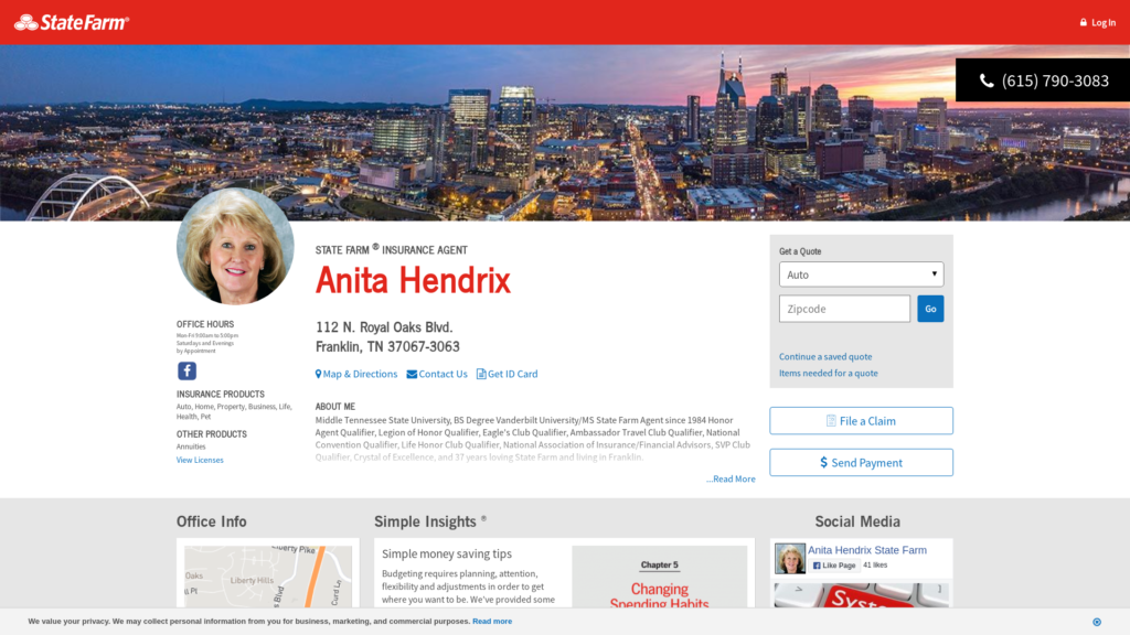 Call (615) 790-3083 for life, home, car insurance and more. Get a free quote from State Farm Agent Anita Hendrix in Franklin, TN