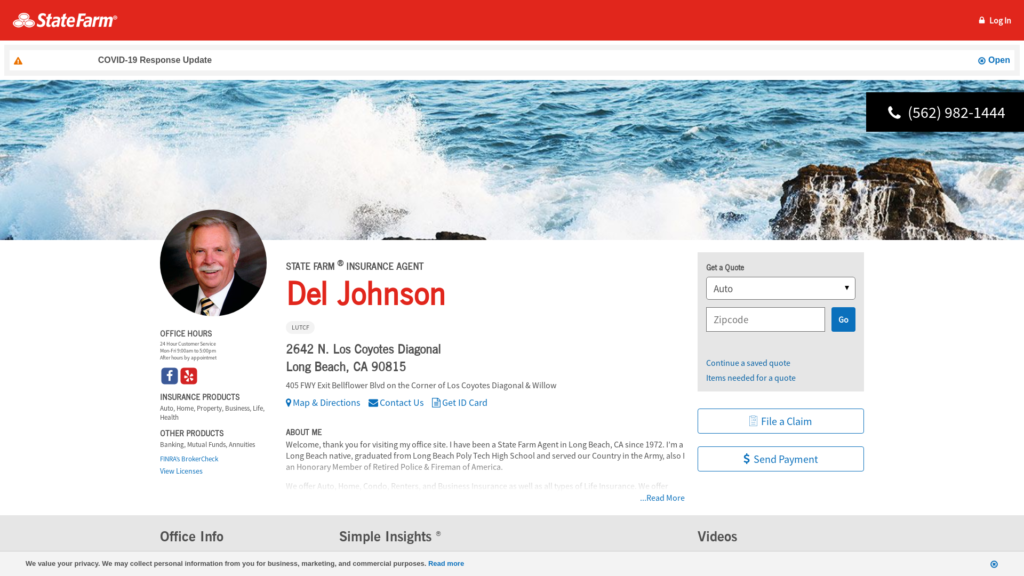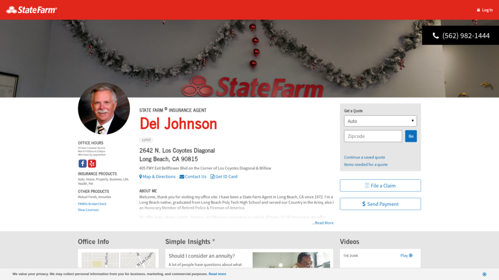 Call (562) 982-1444 for life, home, car insurance and more. Get a free quote from State Farm Agent Del Johnson in Long Beach, CA