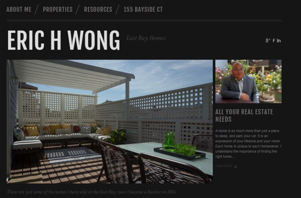 Eric Wong was born in San Francisco. He went to grammar school in Corte Madera, high school in San Francisco, and he earned a BA in English Literature at Cal Berkeley. Eric has lived in London and traveled through Europe, Northern India, and Southeast Asia, but he has always returned home to the Bay Area. He now lives in El Cerrito. Eric was trained as a baker and has worked in many restaurants and bakeries in Berkeley and Oakland. He was also a member of Berkeley’s Cheese Board Collective for 6 years. In 2002, Eric found his calling, Real Estate.