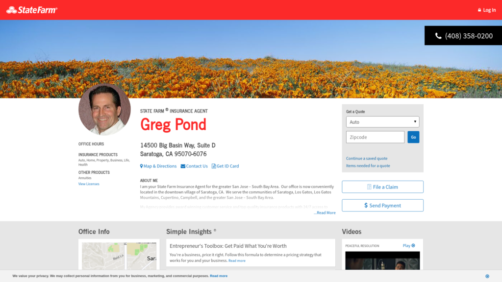 Call (408) 358-0200 for life, home, car insurance and more. Get a free quote from State Farm Agent Greg Pond in Saratoga, CA