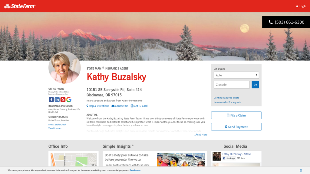 Call (503) 661-6300 for life, home, car insurance and more. Get a free quote from State Farm Agent Kathy Buzalsky in Clackamas, OR