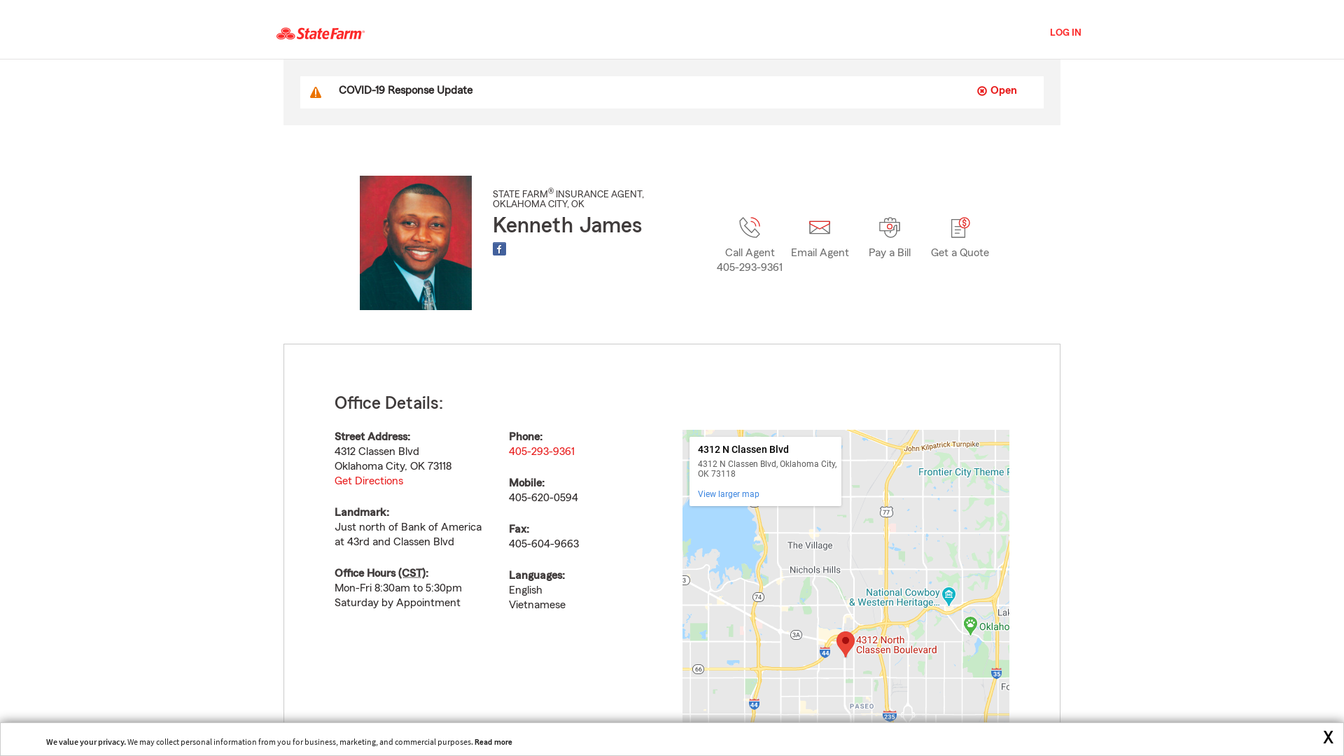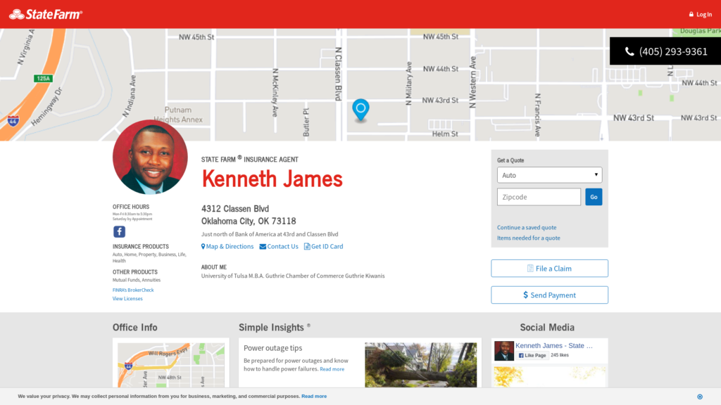 Call (405) 293-9361 for life, home, car insurance and more. Get a free quote from State Farm Agent Kenneth James in Oklahoma City, OK