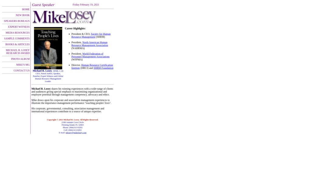 Michael R. Losey shares his winning experiences with a wide range of clients and audiences giving special emphasis to maximizing organizational and employee potential through management competency, advocacy, and ethics.