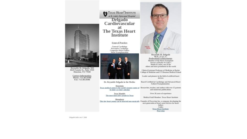 Home » Listings » OFFICES OF REYNOLDS M DELGADO March 24, 2020 OFFICES OF REYNOLDS M DELGADO Medical Add to favourites Report abuse Contact details Please complete the captcha field below to view phone number and/or email address. http://delgadocardio.com WHOIS Created on: 01/22/2008, 14:10PM Last Updated on: 01/23/2026, 08:18AM Expires on: 01/22/2028, 14:10PM Registrant: Organization: Domains By Proxy, LLC State: Arizona Country: UNITED STATES Country Code: US Technical Contact: Organization: Domains By Proxy, LLC State: Arizona Country: UNITED STATES Country Code: US Domain Name: delgadocardio.com Name Servers: Host Names: NS1.ETECHHOSTING.COM, NS2.ETECHHOSTING.COM Audit: Created on: 04/02/2026, 22:58PM Last Updated on: 04/02/2026, 22:58PM Registrar: GoDaddy.com, LLC Registrar IANAID: 146 WHOIS Server: https://rdap.godaddy.com/v1/ Contact Email: abuse@godaddy.com