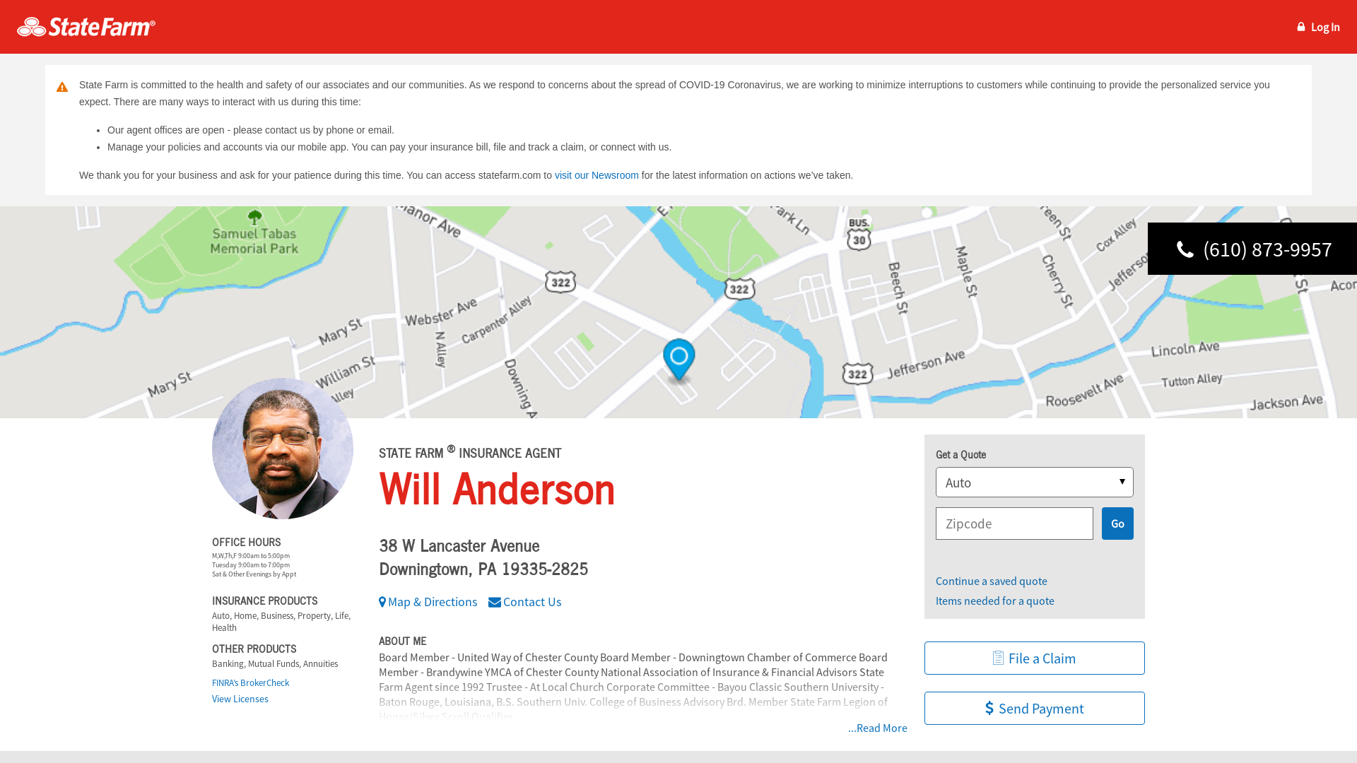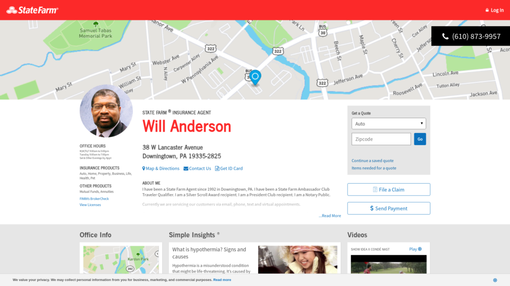 Call (610) 873-9957 for life, home, car insurance and more. Get a free quote from State Farm Agent Will Anderson in Downingtown, PA
