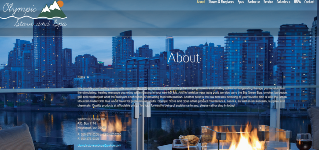 We provide your heating needs with warm comfort. Whether it is through dancing fire bringing warmth and kindling spirits, or invigorating therapy you receive from the stimulating, healing message you enjoy while relaxing in your new hot tub. And to tantalize your taste buds we also carry the Big Green Egg, smoker, barbeque, grill, and roaster just what the backyard chef needs for providing food with passion. Another twist to the low and slow smoking of your favorite dish is with the Green Mountain Pellet Grill, a true wood flavor for professional results. Olympic Stove and Spas offers product maintenance, service, as well as accessories, supplies, and chemicals. Quality products at affordable prices, we look forward to being of assistance to you, please call or stop in today!
