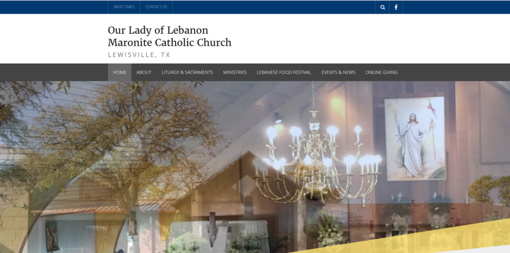 Our Lady of Lebanon Maronite Catholic Church was established in 1990. After a three-year effort through the DFW Maronite Church project, the 3.5 acre Lewisville property where we worship today was purchased. Our congregation is growing as the warmth of its members and the beauty and reverence of the Maronite Liturgy continue to attract new members each week. The Parish, under the prayerful leadership of Father Assaad ElBasha, MLM, is committed to community service, offers CCD for Pre-K through 8th grade, Adoration of the Holy Eucharist, and Marriage preparation classes.