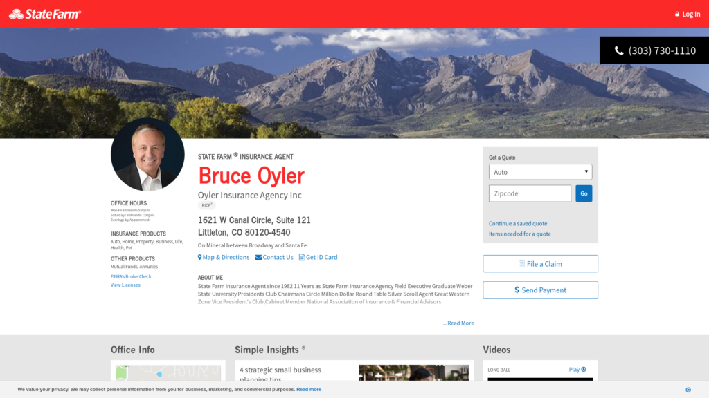 Call (303) 730-1110 for life, home, car insurance and more. Get a free quote from State Farm Agent Bruce Oyler in Littleton, CO