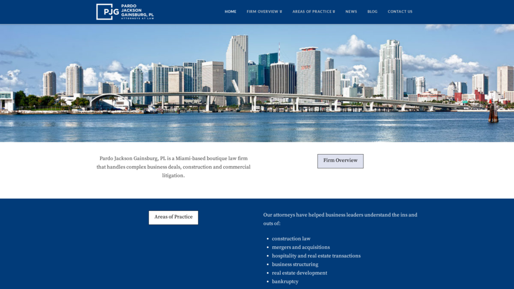 Pardo Jackson Gainsburg, PL is a Miami-based boutique law firm that handles complex business deals, construction and commercial litigation.