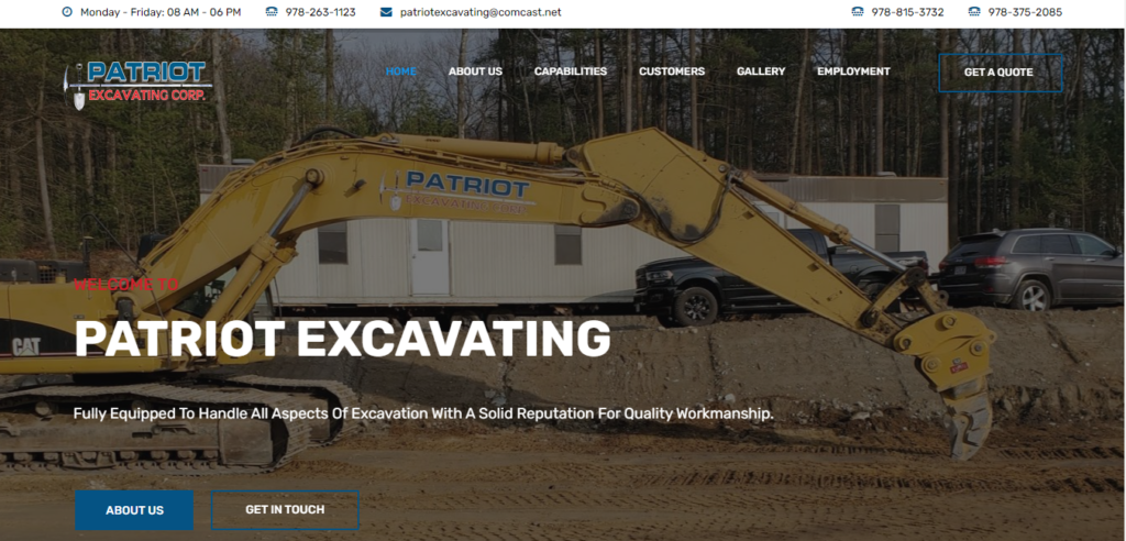 Patriot Excavating Corporation is a family-run business incorporated in Acton, Massachusetts in 1998 by brothers A.J. Pittorino and Phil Pittorino. The brothers are the third generation in a family of excavators, having carried on the tradition of their late father, Joseph Pittorino, owner of New England Excavating and Development, Inc.