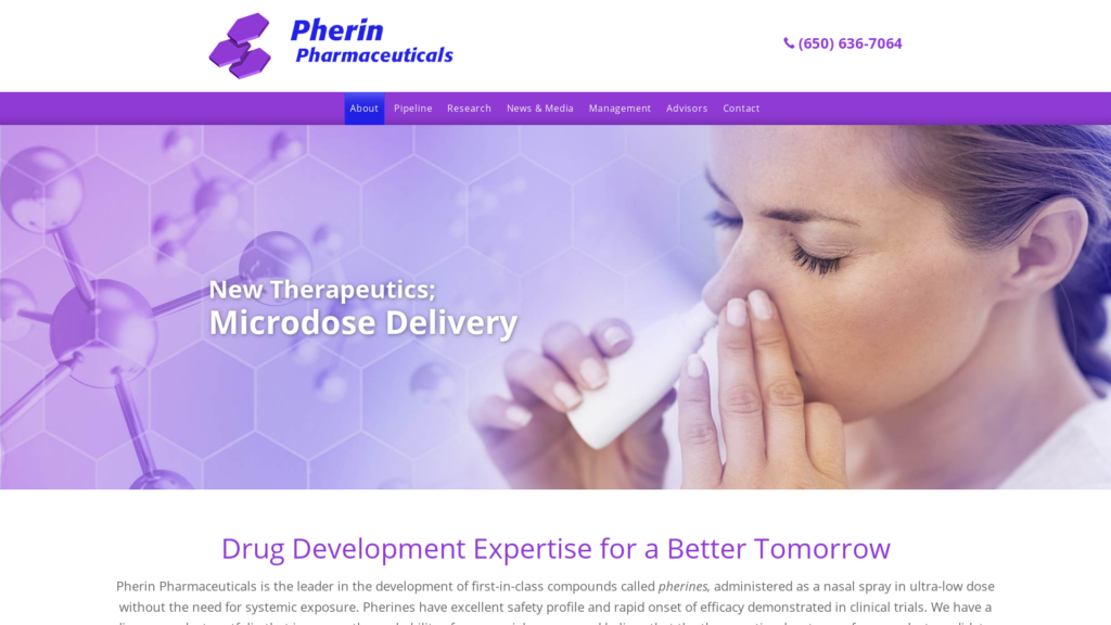 Pherin Pharmaceuticals is the leader in the development of first-in-class compounds called pherines, administered as a nasal spray in ultra-low-dose without the need for systemic exposure. Pherines have an excellent safety profile and rapid onset of efficacy demonstrated in clinical trials. We have a diverse product portfolio that increases the probability of commercial success and believes that the therapeutic advantages of our product candidates will result in purines becoming an important new class of approved pharmaceuticals.