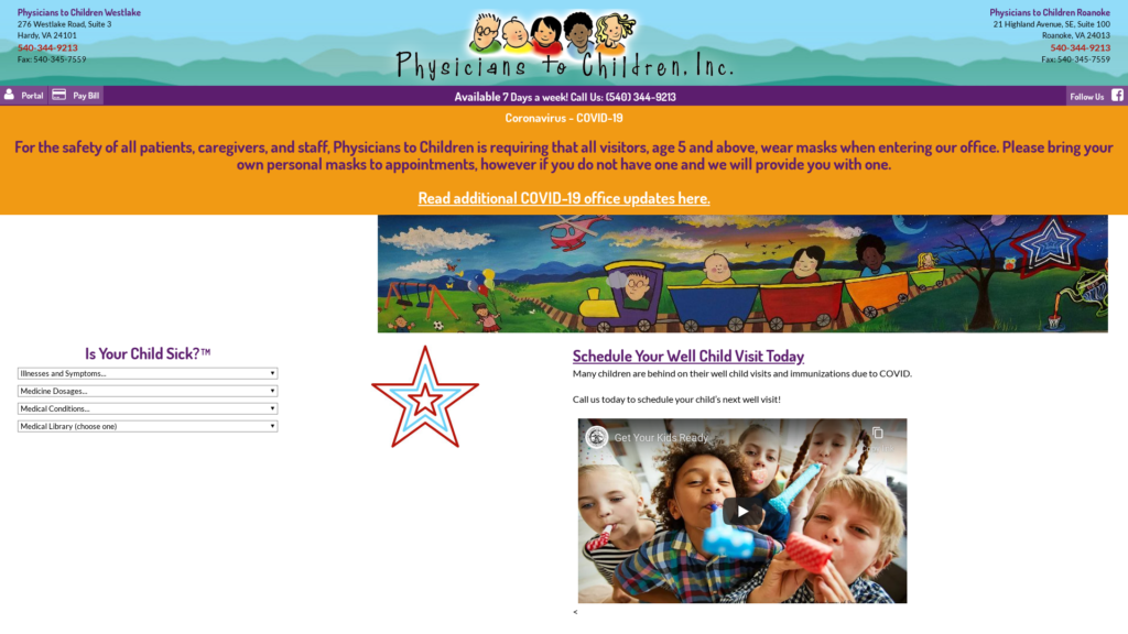 Physicians to Children, Inc. is an independent group of pediatric health care providers who, for over half a century, have dedicated themselves to providing comprehensive, compassionate, and competent care to infants, children, adolescents, young adults and their families in the Roanoke Valley and surrounding areas.Values Statement: