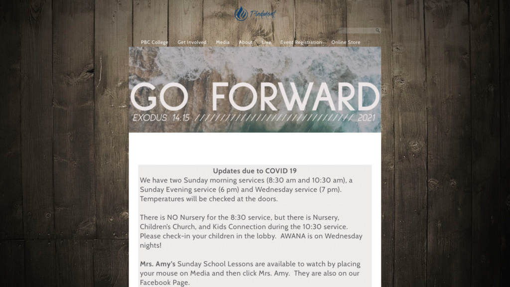 Whether you are looking for your first church or a new church, you are welcome to visit with us. Please come and Join Us In Worship. Piedmont Baptist Church is a place that exists with the purpose of glorifying God. Our Mission is to go share the Gospel, grow in God’s Word, give of ourselves, and gather to worship.