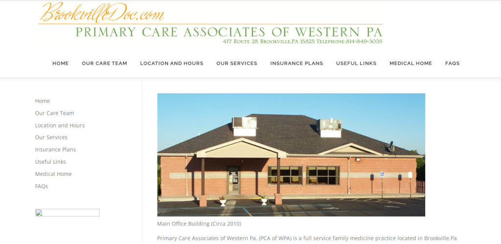 Primary Care Associates of Western Pa. (PCA of WPA) is a full service family medicine practice located in Brookville,Pa. We are committed to providing the highest quality of medical care available anywhere. By utilizing state-of-the-art medical and computer equipment we strive to provide our patients the highest level of care possible.