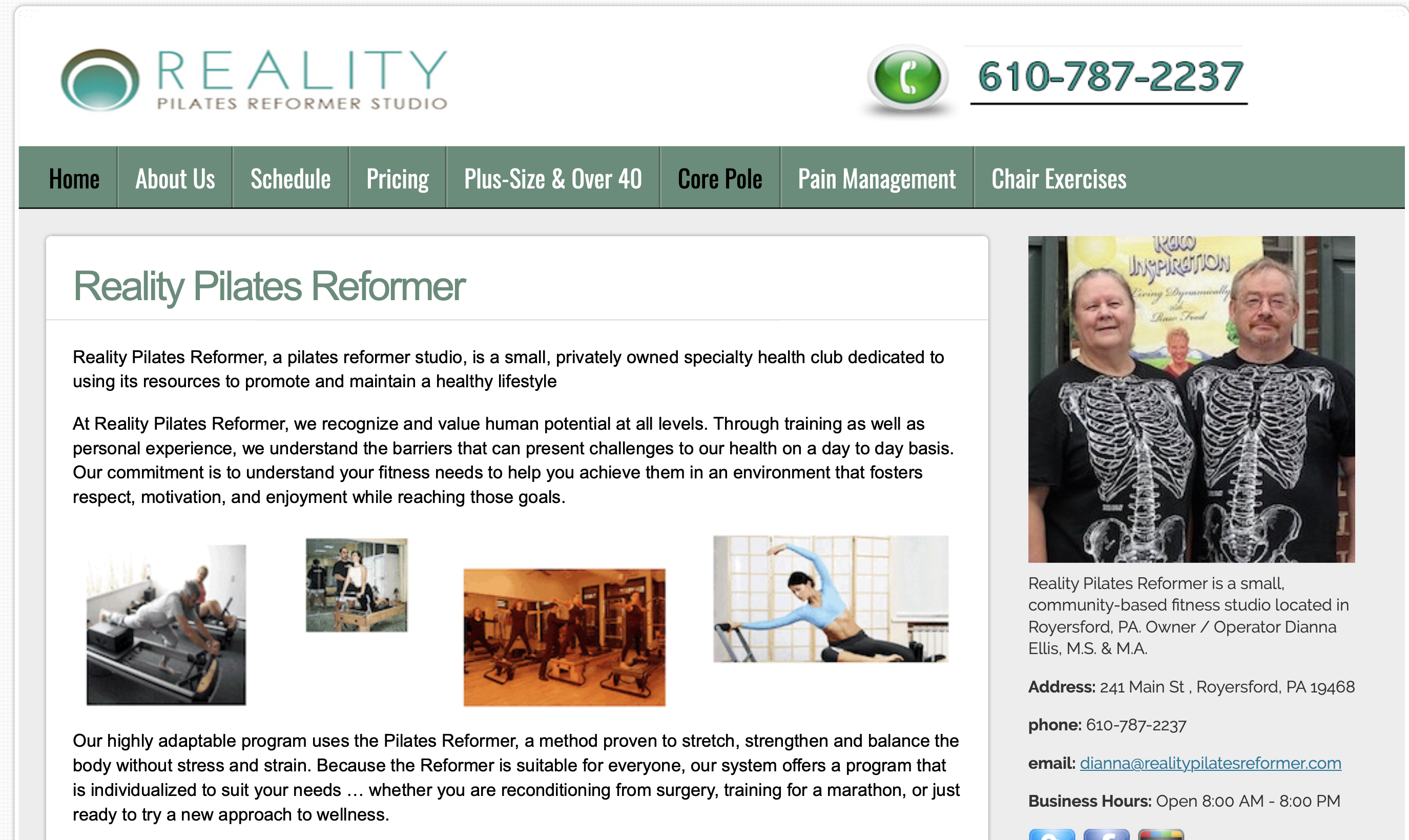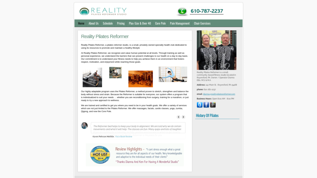 Reality Pilates Reformer, a pilates reformer studio, is a small, privately owned specialty health club dedicated to using its resources to promote and maintain a healthy lifestyle