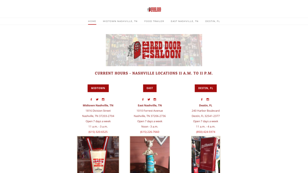 The Red Door Bar & Saloon with three great locations, two in Tennessee: Midtown Nashville, East Nashville, and one in Destin Florida.