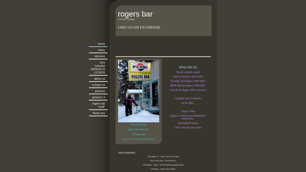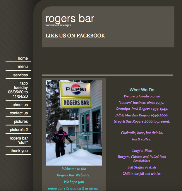 Rogers Bar was licensed as the Cisco Inn from 1939 to 2002, (but known as Rogers Bar since the ’60s). Grandpa named it that because it is located on Cisco Lake Road and Old US Hwy 2 and just North of the Cisco Lake Chain.