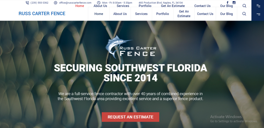 Family owned and operated since 2014, Russ Carter Fence is the premier fence installation company based in Naples, Florida. We are licensed, bonded, and insured in Collier, Charlotte, Highlands and Lee County. Whether you need a pool barrier fence, temporary construction fence, perimeter security fencing, or gates and access systems, we are here to serve you.